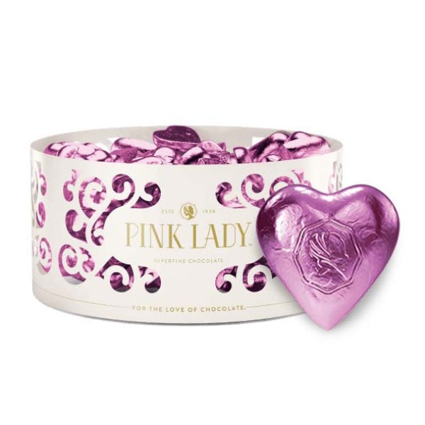 125pk Pale Pink 8g Premium Milk Chocolate Pink Lady Foil Hearts in a Tub