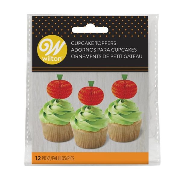 Home > Halloween Baking > 12pc Pumpkin Honeycomb Pick Cupcake Topper