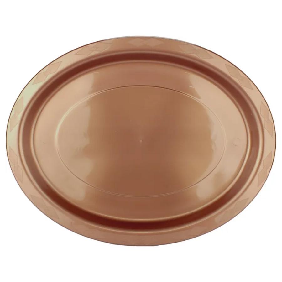 20pk Rose Gold Plastic Reusable Oval Plates 315x245mm