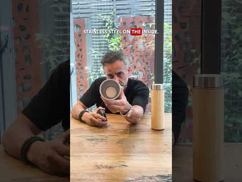 Stainless steel double wall water bottle is now given a new eco feature of natural bamboo outer wall which is made of sustainably sourced bamboo. It has a push on plastic lid with splashproof sliding