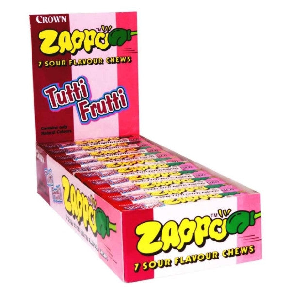 Satisfy your sweet cravings with 60pk Zappo Tutti Frutti 26g!\n\nIndulge in a world of sugary delights, whether you're an event planner, small business owner, or simply a connoisseur of all things sweet.