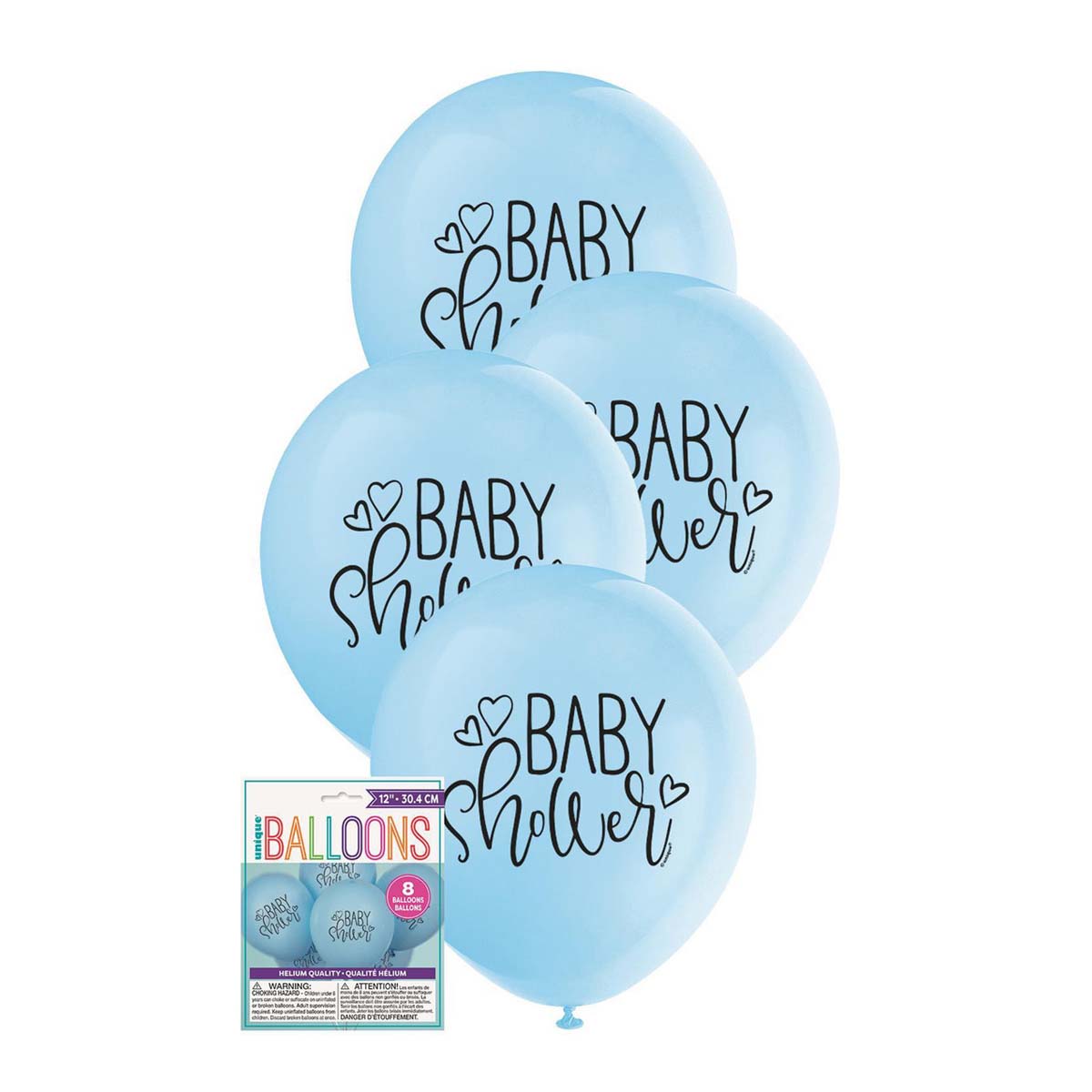 8pk Blue Baby Shower Printed Latex Balloons 30cm