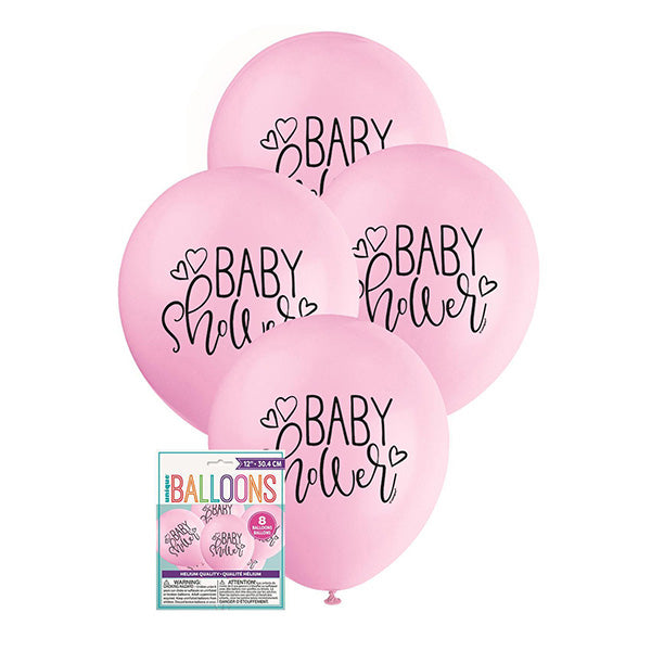 8pk Pink Baby Shower Printed Latex Balloons 30cm