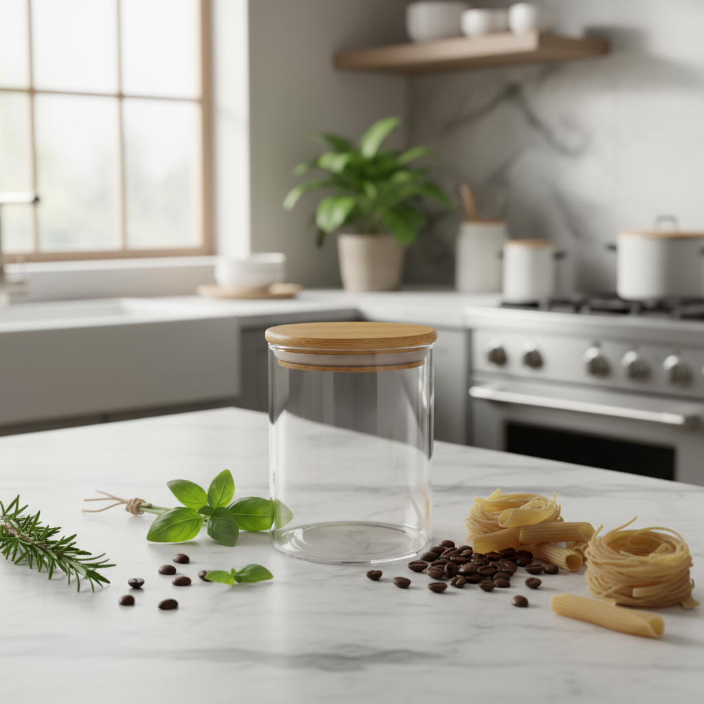 Bamboo Glass Jars Round 550ml Create a classy get go in your own kitchen using this marvellous Glass Bottle. Classic glass bottle design, this piece is made from high quality durable glass material to safe keep your precious condiments or ingredients and its stylish lid helps to secure its contents. Let us help provide you with all your kitchen essentials and beautify your kitchen with us today.