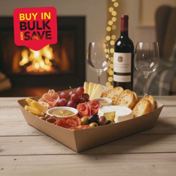 Serve fries, snacks, or sides in style with our brown corrugated trays and chip cups. Designed for strength and stability, these trays hold both hot and cold foods without bending or leaking. Their natural kraft finish gives a clean, sustainable look that complements any casual dining setup or catering event.