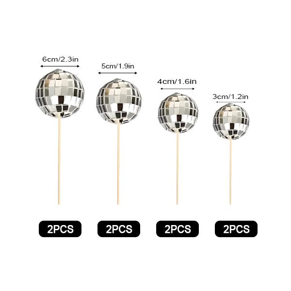 Disco Ball Set of 8pk with Sticks 3cm, 4cm, 5cm, 6cm