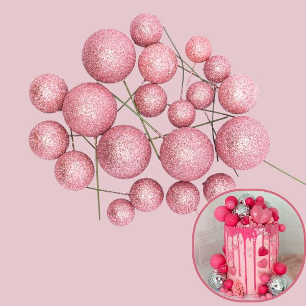 Home > Cake Toppers > Glitter Hot Pink Ball Topper 20pk