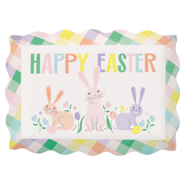 Happy Easter Scalloped Cardboard Serving Tray (13.25inX 9.5in)