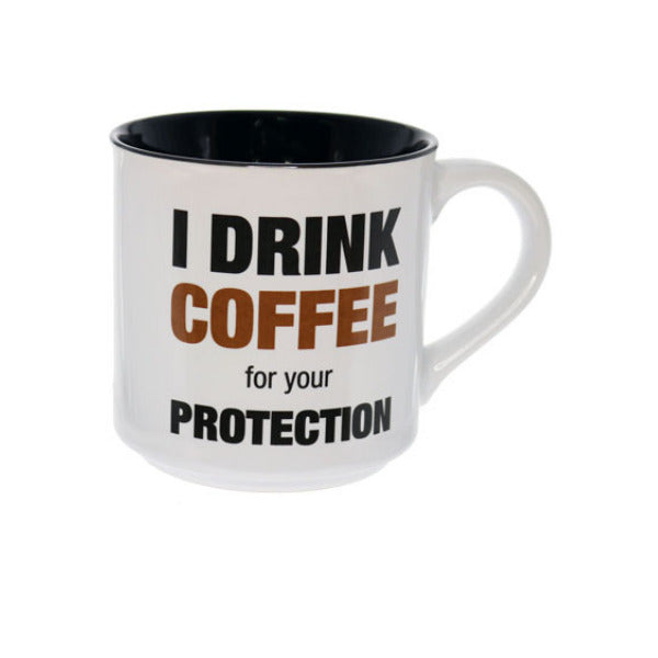 Novelty Coffee Mug (I Drink Coffe For Protection) Bring joy and laughter to your daily routine with our novelty funny coffee mug, start your day on a positive note with a mug that delivers a hearty laugh.