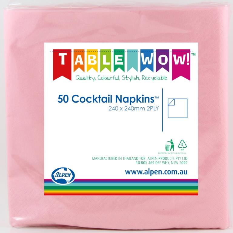 Light Pink Cocktail Napkins 2ply 24x24cm 50pk