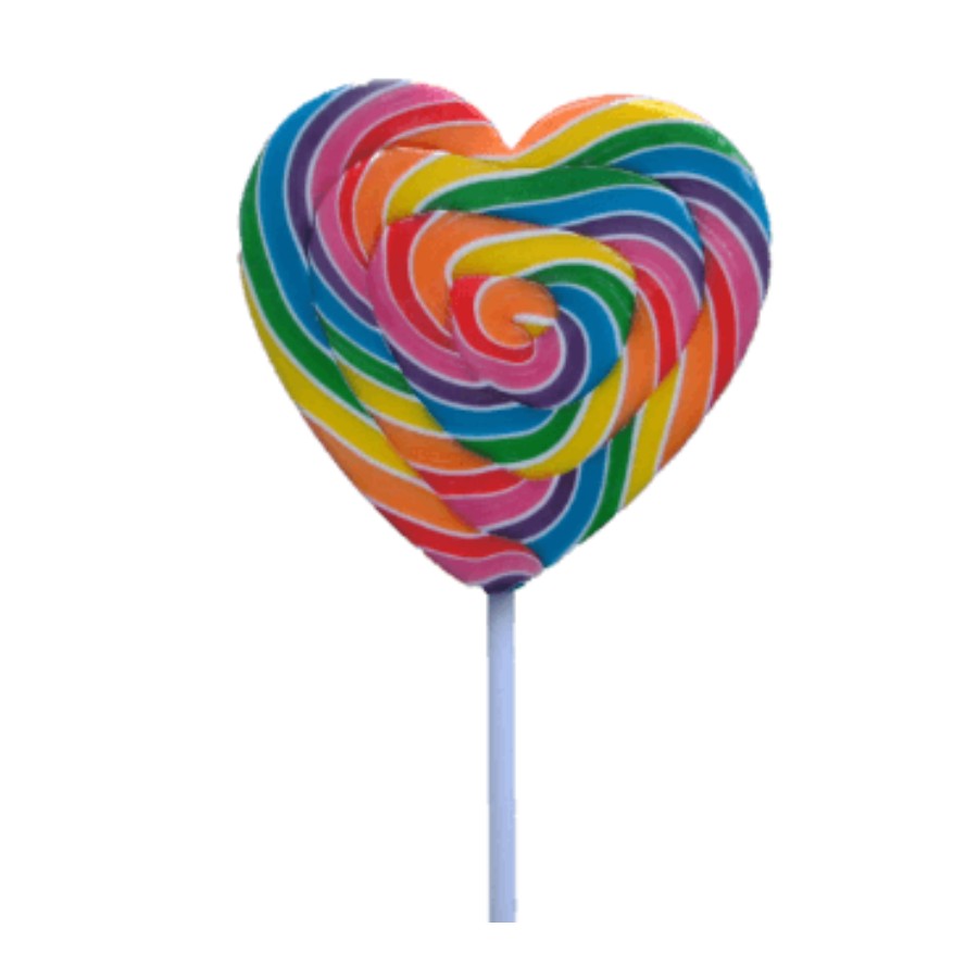 Satisfy your sweet cravings with Mega Rainbow Swirl Heart Pop 85g!