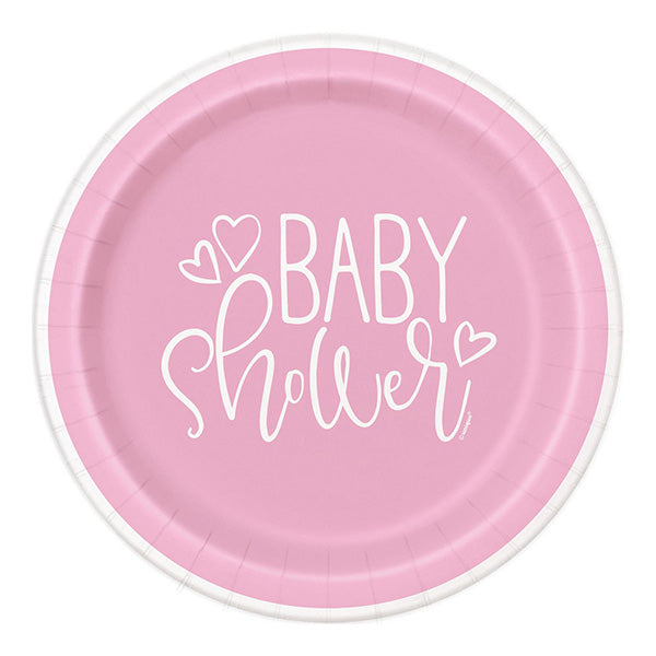 Pink Baby Shower Hearts 7in Paper Plates 8pk