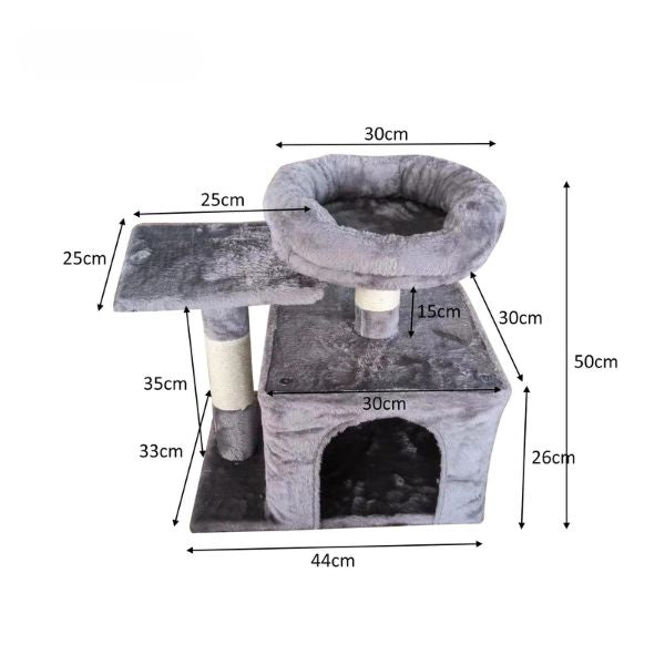 Purrfect Multi Level Cat Scratching Pole 43x33x50cm (Grey or Brown)