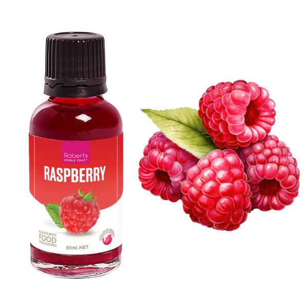 Roberts Raspberry Flavour Colour 30ml\n\nOur Flavoured Food Colourings are an opaque coloured water soluble flavoured food colouring. \nThey add flavour and colour whilst matching the aromatic scent. \nThey are unique that each drop you add does the two steps in one, which makes them perfect for flavouring and colouring icings and frostings. \n\nBaking & Dessert Application:\nAdd to icings, cake & biscuit batters, fondant creme, fillings, ice-cream & macarons when you want intensity of flavour matched with the fragrance of the flavour.\n\nFlavoured Food Colourings are a great addition to create a flavoured soft centred filling for chocolates.\nNote: Flavoured Food Colourings are not suitable to flavour chocolate. It may cause the chocolate to seize, as you as you are adding a water-based product to an oil based product. \n\nOnce opened, stored in cool dry conditions away from direct sunlight and heat. Shelf life is greater than 24 months if stored correctly.\n\nContents: 30 ml\nSuitable for Halal and Kosher dietary requirements\nSuitable for Vegan & Vegetarian Dietary requirements\n\nMade in Australia from Imported Ingredients.