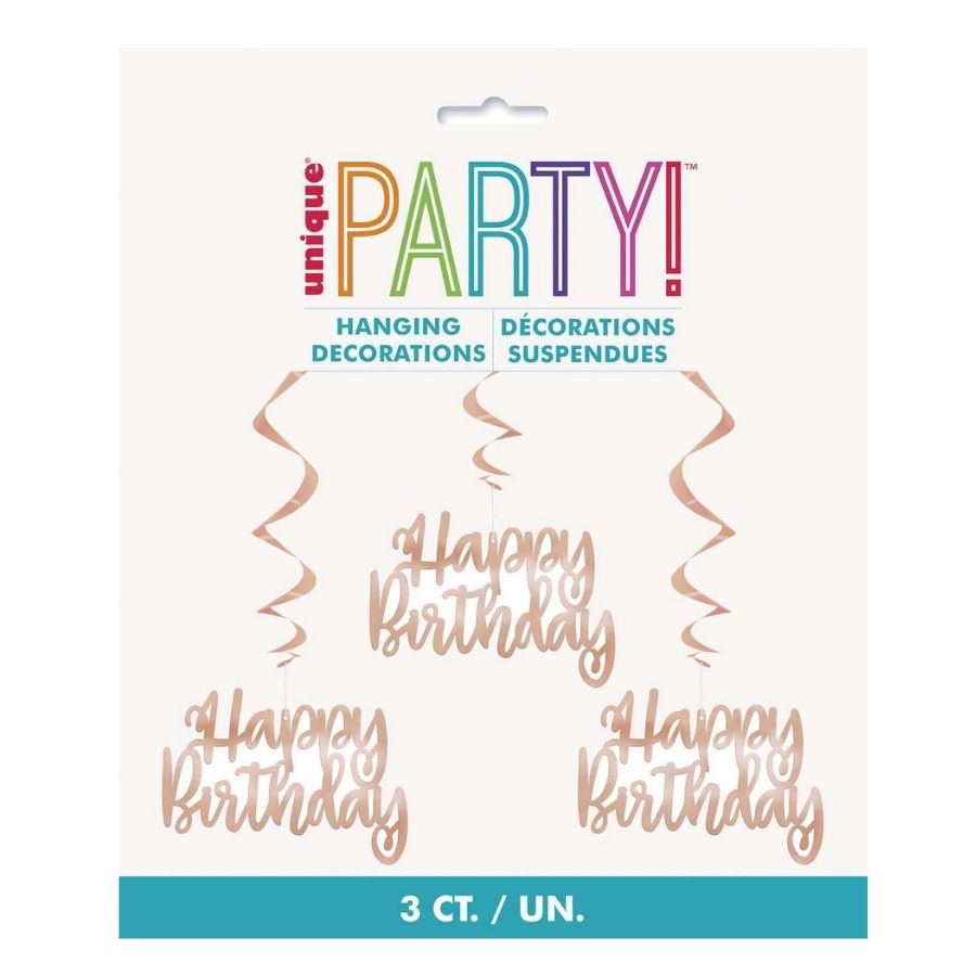 Rose Gold Foil Happy Birthday Hanging Decoration 81cm 3pk