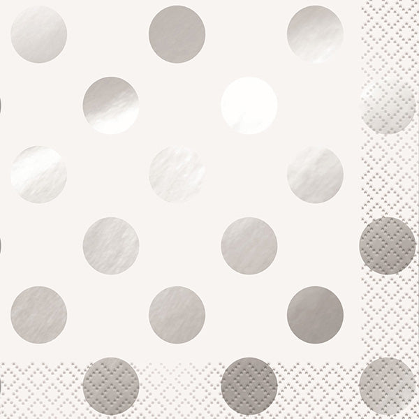 Silver & White Dots Beverage Napkins 25.4x25.4cm 16pk