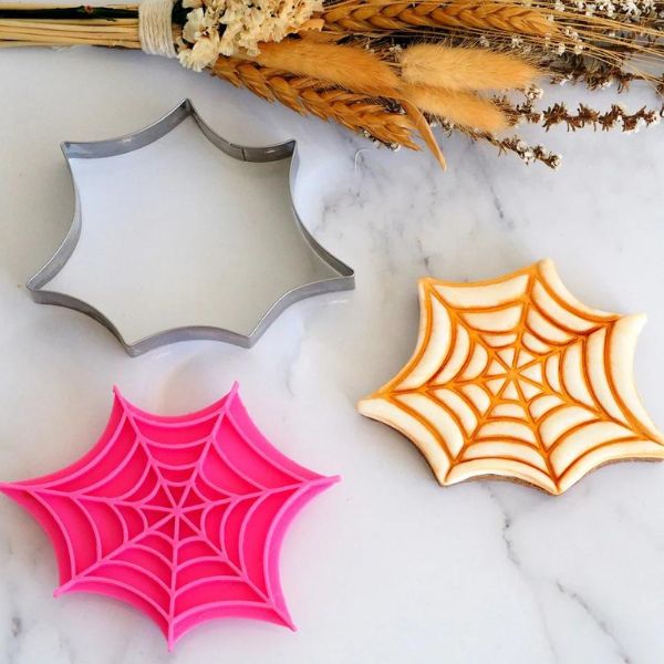 Spider Web Emboss 3D Printed Cookie Stamp & Stainless Steel Cookie Cutter Set