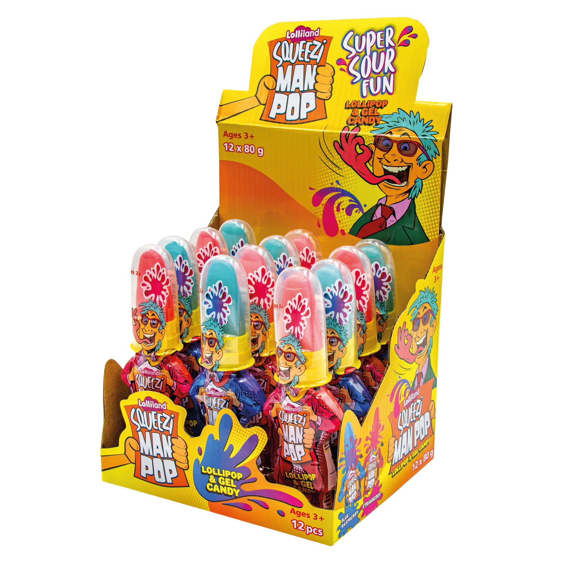 If you're shopping for confectionery, sweets, candy, chocolate, or lollies, I Love This Shop Australia is the place to start. Whether you are an event planner, small business owner, or just someone who really loves sweets, we've got the goods for you. We offer sweets from brands you love, retro childhood candy, soft and chewy lollies, sour and fizzy lollies and much much more. Every sweet tooth's dream land, where you can shop selectively or in bulk. Dive into the world of sweets, confectionery and chocolate, and purchase your lollies online!\n\nSQUEEZI MAN POP\nLollipop for hair and gel candy in the body.\nWhile licking the lollipop, squeeze the body\nto add a sour fruit flavoured gel candy. The\nlollipop and gel candy combination comes in\nthree flavours: Strawberry, Blue Raspberry,\nand Cola.